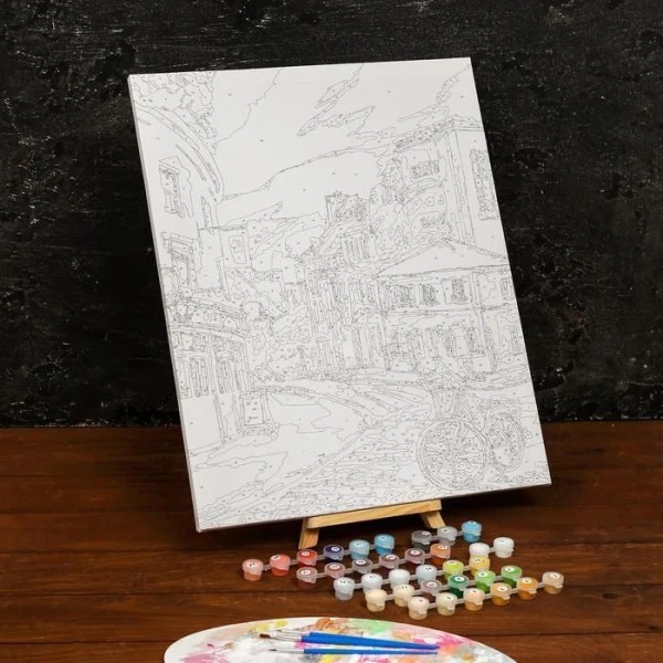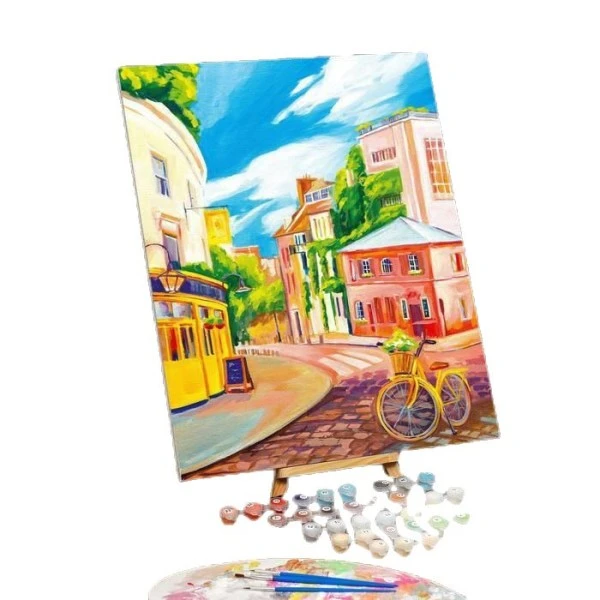 Description de Peinture Par Numéros Sur Toile Avec Sous-Cadre, Art Mural, » vélo dans la rue « 40 × 50 cm, Sur Toile