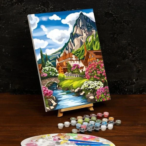 Description de Peinture Par Numéros Sur Toile Avec Sous-cadre, et pinceaux, Kits, Pour, Art mural, » Paysage « 30 × 4