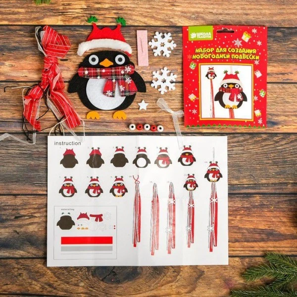 Description de Pingouin Dans Écharpe Diy Kit, Cravate Arc, Kit, Artisanat, Fée, Feutre, Porte Décoration, Ensemble