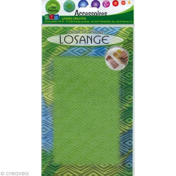 Cette plaque de texture Fimo apportera relief, finesse et précision du détail à vos créations modelage, et ce, grâce à ses motifs réguliers en forme de Losanges. Pour utiliser votre pâte fimo sur votre plaque texture Losanges, plusieurs méthodes s’offrent à vousrouleau, machine à pâte fimo ou tout simplement manuellement.