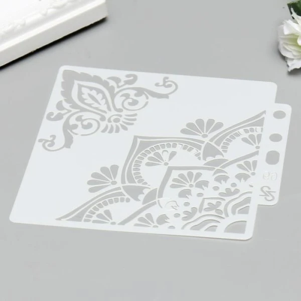 Description de Pochoir en plastique « motifs orientaux » 13×14 cm, Police, fichier coupé, Artisanat, Décoration Mural