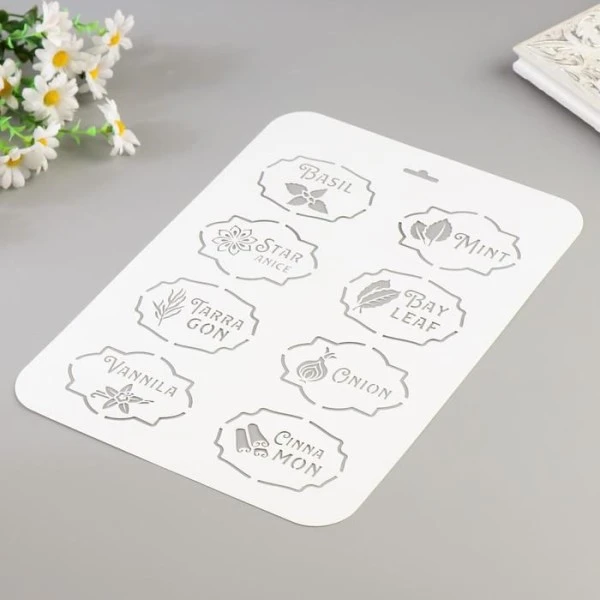 Description de Pochoir « épices 2 » 22×31 cm, vinyle, Police, Cookies, fichier coupé, Artisanat, Décoration Murale De