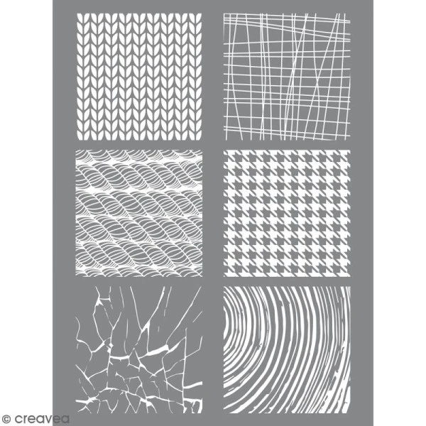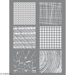 Ce gabarit pour pâte polymère sur le thème Matière, en plastique souple, mesure au total 11,4 x 15,3 cm. Utilisez-le pour sublimer vos différents modelages en imprimant toutes sortes de motifs.