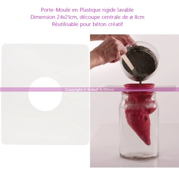Description de Porte-Moule en Plastique rigide lavable, 24x21cm, découpe ø 8cm, Réutilisable pour béton créatif