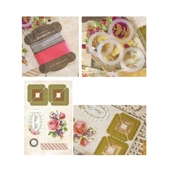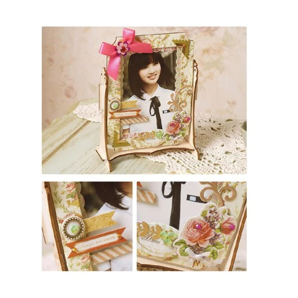 Description de Rose Rose, Or Blanc, Vert, Mauve Album de BRICOLAGE en Bois Ornées de Frame Kit Vintage Luxe 18,5 cm