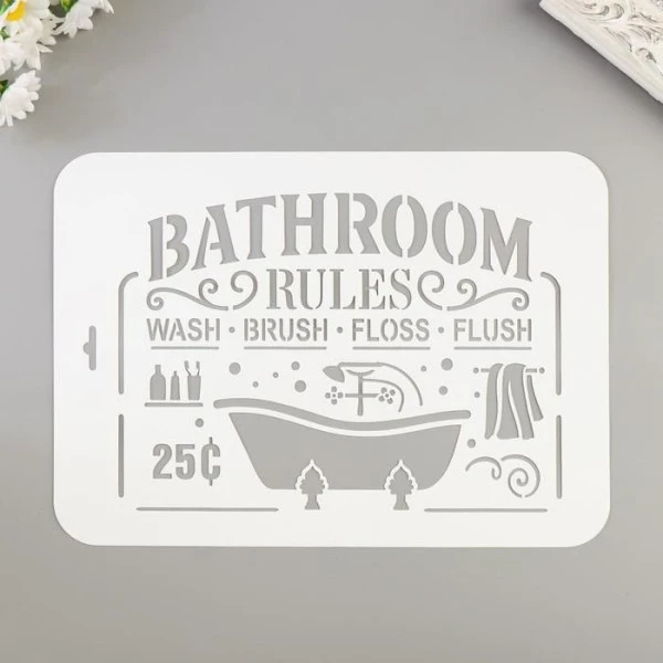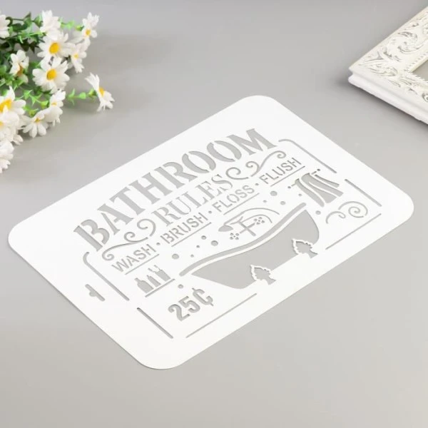Description de « Salle de bains » pochoir 22×31 cm, vinyle, Police, Cookies, fichier coupé, Artisanat, Décoration Mur