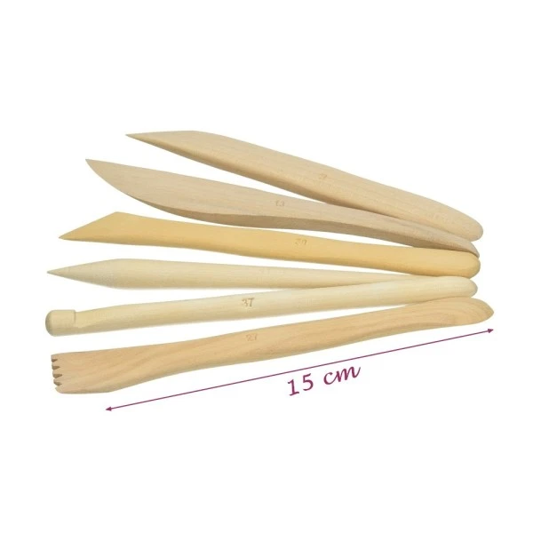 Description de Set de 6 ébauchoirs en Bois, 15 cm, pour modelage d’argile, pâte à modeler, terre cuite