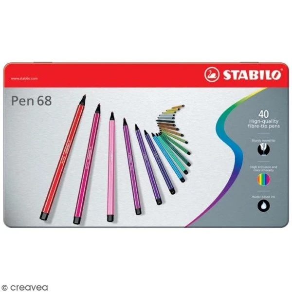 Données techniques pour Stabilo Pen 68 – Etui en métal de 40 feutres – Couleurs assorties