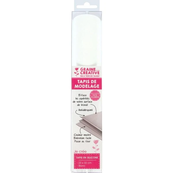 Ce tapis pour modelage spécial pâte fimo et pâte polymère vous servira de support pour étaler votre pâte polymère et la découper avec des emporte pièces, tout en évitant les aspérités de la table. Ce tapis de 23 x 33 cm est en en silicone blanc. Vous pouvez le passer directement au four ! De plus, ce tapis antidérapant est facile d’entretienun simple rinçage à l’eau et au savon suffit !