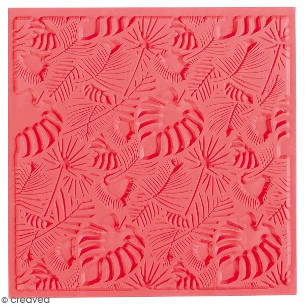 Le principe de cette plaque de texture en caoutchouc souple est simple : il suffit par pression de transférer le motif Tropical sur la pâte Fimo avant de la faire cuire pour garder l’effet relief ! Vous pourrez ainsi créer des bijoux texturés mais aussi des accessoires déco totalement uniques aux motifs de feuilles tropicales.