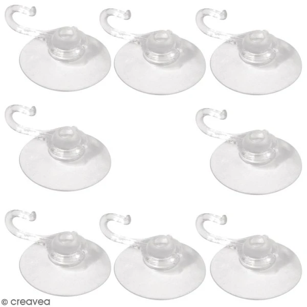 Ce sachet contient 8 ventouses avec crochets. Ces ventouses sont notamment très pratiques pour placer des guirlandes et suspendre différents objets sur n’importe quelle surface lisse. Elles sont dotées d’un crochet de 10 mm. Vous n’avez qu’à appuyer sur la ventouse pour la fixer sur une vitre, sur un mur non poreux, etc.